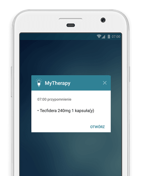 Stwardnienie rozsiane nie jest jeszcze całkowicie uleczalne, ale nowoczesne leki takie jak Tecfidera, Fingolimod, Interferon i Mavenclad pomagają zmniejszyć częstotliwość rzutów choroby oraz złagodzić jej symptomy. Pozytywne efekty można osiągnąć tylko wtedy, gdy terapia prowadzona jest regularnie. Aplikacja MyTherapy zawsze przypomni o konieczności zażycia leku na czas.